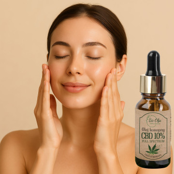 Ten olejek CBD o stężeniu 10% (full spectrum) przeznaczony jest do kompleksowej pielęgnacji skóry twarzy i ciała. Jest to w 100% naturalny produkt, pozyskiwany z organicznych upraw konopi siewnych w Polsce i bogaty w kannabinoidy, terpeny oraz kwasy Omega-3 i Omega-6. Olejek intensywnie nawilża, regeneruje i koi skórę, przynosząc jej szereg korzyści pielęgnacyjnych.