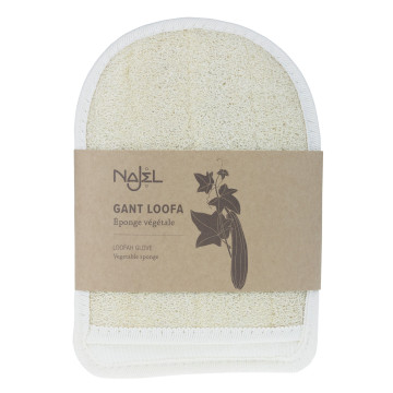 Rękawica do masażu i peelingu wykonana z jednej strony z Loofy (naturalna gąbka powstała w wyniku suszenia owoców trukwy egipskiej), druga strona wykonana jest z tkaniny frotte.