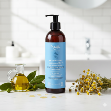 Formuła szamponu opiera się na roślinnych składnikach aktywnych, które zapewniają łagodne mycie bez podrażnień. Hydrolat z rumianku (Chamomilla Recutita) koi skórę głowy i działa przeciwzapalnie, łagodząc podrażnienia.Oliwa z oliwek intensywnie odżywia oraz wzmacnia włosy na całej długości, przywracając im miękkość i gładkość. Z kolei olej laurowy (olejek z wawrzynu szlachetnego) słynie z właściwości antyseptycznych – pomaga zwalczać problemy skóry głowy (łupież, nadmierne przetłuszczanie), wzmacnia cebulki i stymuluje zdrowy wzrost włosów.Te naturalne oleje z Aleppo chronią również pasma przed łamliwością i rozdwajaniem,sprawiając, że włosy są mocniejsze i bardziej odporne na uszkodzenia.