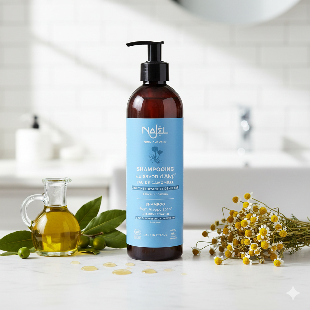Poznaj Najel Szampon z Aleppo 2 w 1 do włosów normalnych – wyjątkowe połączenie szamponu i odżywki, stworzone z myślą o zdrowej i naturalnej pielęgnacji włosów każdego dnia. Ten organiczny kosmetyk łączy tradycję słynnego mydła Aleppo (oliwa z oliwek + olej laurowy) z nowoczesną formułą, która jednocześnie myje i kondycjonuje pasma włosów.Dzięki niemu codzienne mycie włosów zmienia się w przyjemny rytuał – delikatna, ziołowa piana otula zmysły, a włosy zyskują świeżość i blask w zgodzie z naturą.