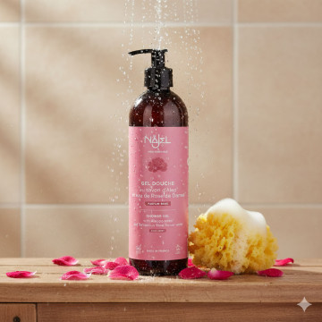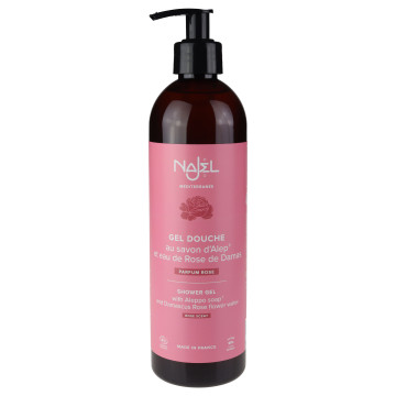 Stworzony na bazie tradycyjnego mydła z Aleppo Naturalny żel pod prysznic z różą damasceńską Najel, oczaruje Cię swoim kwiatowym aromatem. Łączy w sobie bliskowschodnie dziedzictwo Aleppo z francuską doskonałością w pielęgnacji ciała. Formuła produktu wykorzystuje oryginalną recepturę mydła Aleppo – zawiera oliwę z oliwek i olej laurowy – dzięki czemu delikatnie oczyszcza skórę, jednocześnie ją nawilżając. Dodatkowo wzbogacono go wodą z róży damasceńskiej o urzekającym zapachu oraz kojących właściwościach dla skóry.