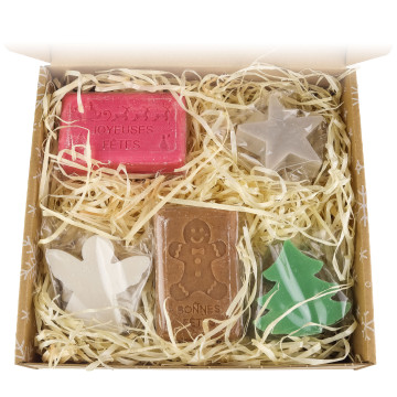 Przygotuj się na magię świąt z wyjątkowym zestawem mydeł Foufour, zapakowanym w eleganckie, świąteczne pudełko z okienkiem. To doskonały prezent dla bliskich lub sposób na wprowadzenie świątecznego nastroju do własnej łazienki. W zestawie znajdziesz pięć ręcznie wykonanych mydeł marsylskich o wyjątkowych świątecznych kształtach i zapachach: