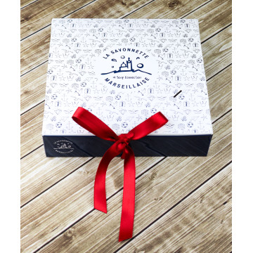 Jeśli chcesz stworzyć własny zestaw mydeł napisz w komentarzu do zamówienia jakie 6 mydeł wybierasz. Pamiętaj, że ten karton jest zrobiony na wymiar mydeł 125g firmy Foufour!