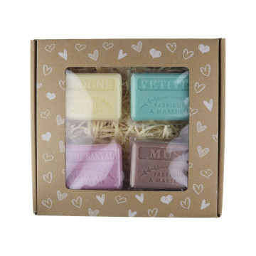 Elegancki zestaw czterech mydeł marsylskich zapakowany w stylowe pudełko z okienkiem, stworzony specjalnie dla mężczyzn ceniących klasyczne, intensywne zapachy. Mydła marsylskie oferują delikatną pielęgnację skóry, łącząc tradycyjną recepturę z wyjątkowymi aromatami. To idealny prezent dla bliskiej osoby lub sposób na uzupełnienie codziennej pielęgnacji.