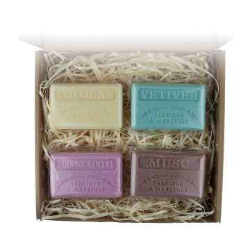Zestaw Mydeł Marsylskich 4x125g Dla Niego – Kolońskie, Drzewo Sandałowe, Wetiwer, Piżmo