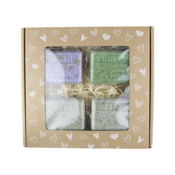 Elegancki zestaw mydeł marsylskich, zapakowany w piękne pudełko z okienkiem, to doskonały wybór na prezent lub jako element codziennej, naturalnej pielęgnacji. Każde mydło to wyjątkowe połączenie delikatnego oczyszczania i zmysłowych zapachów inspirowanych naturą.