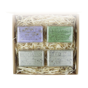 Zestaw 4 Mydeł Marsylskich 125g – Kwiat Lawendy Werben z Listkami Rozmaryn Tymianek